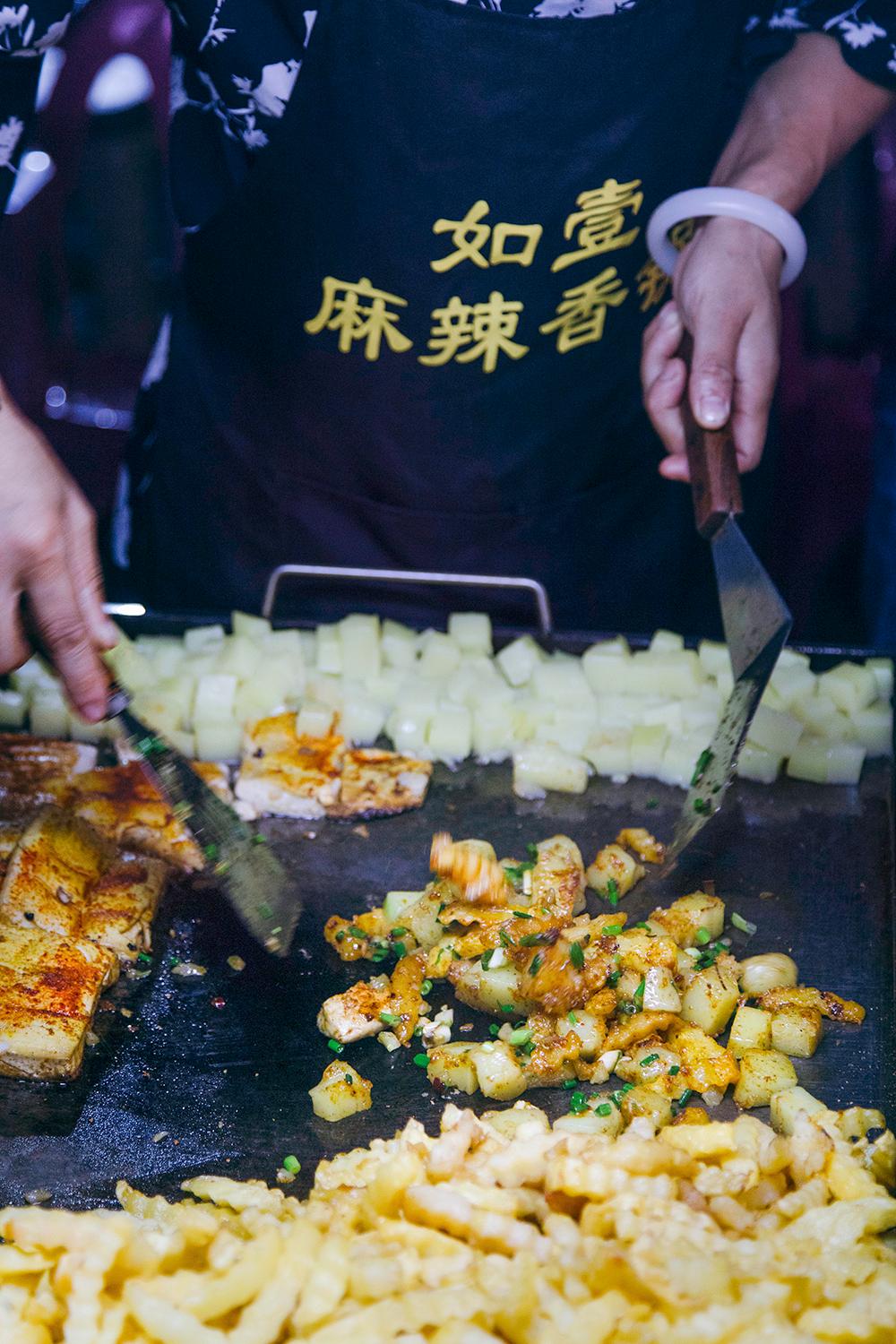 来夜市必吃的铁板豆腐和铁板土豆,看似平平无奇的小摊,好味道只有吃过才知道。