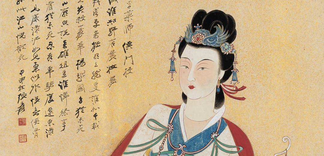 这幅创作于1944年的《红拂女》,是张大千展现自己已完全深刻掌握唐代仕女画风,又能融古出新的杰作。在敦煌临摹以前,大千学习宋代以下的仕女画;敦煌之后的十余年间,他才达到一生创作仕女画的最高峰。
