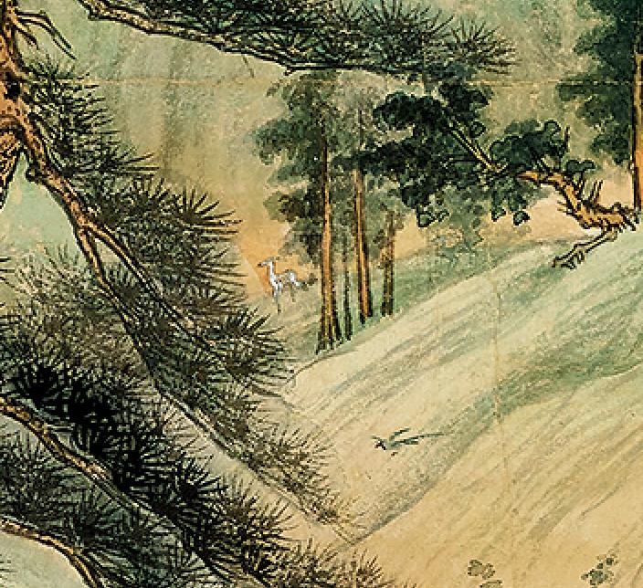 1945年,张大千急赴故都,就为搜购于战乱期间流散于民间的古代字画,其中尤其让他魂牵梦绕的就是南唐画家董源的《江堤晚景》,终于在1946年将此画购入。大千极其钟爱这幅画,可谓其古画收藏中最具重要意义的一件,也是对大千盛年创作影响最大的一件。大千一直随身携带这件董源的《江堤晚景》,即使在他仓促间返回成都,携家小离开大陆之际,这件作品也是他行囊中的主要宝物。