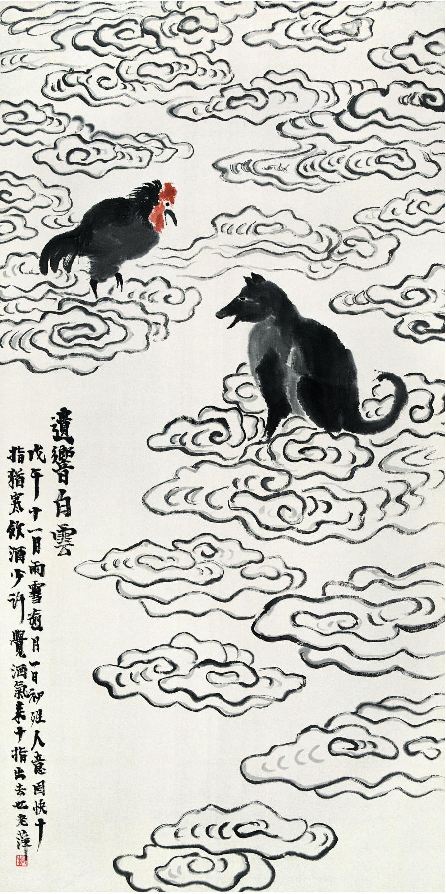 齐白石 《遗响白云》 纸本设色 89×44cm,1918年 荣宝斋提供