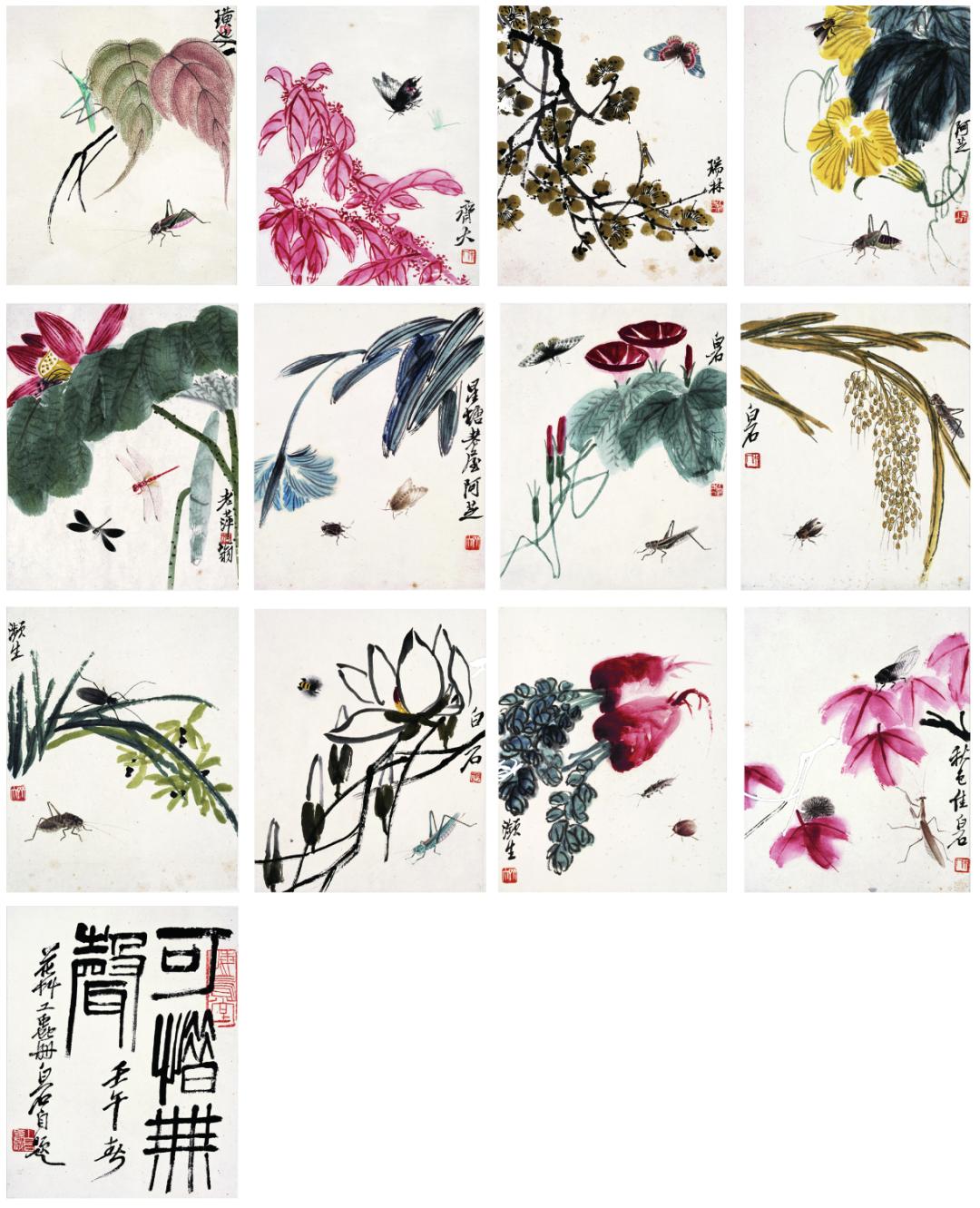 齐白石 《可惜无声 • 花草工虫册》 纸本设色 册页(十三开) 29×23cm×13 1942年 私人收藏,龙美术馆提供