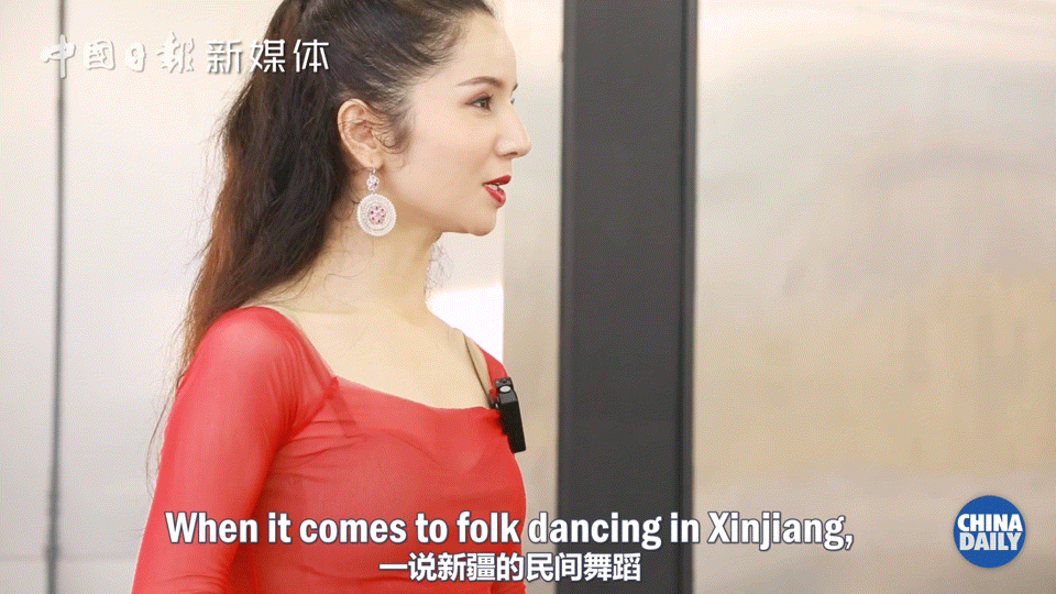 一说新疆的民间舞蹈,大家第一个想象到的就是动脖子的动作,我们在专业术语里叫移颈,你的腮部往两边移动。