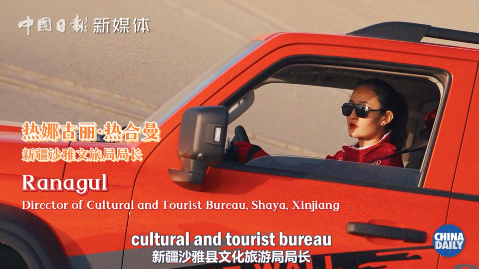 在热娜古丽局长的短视频账号“热娜局长说沙雅”上,有风格多样的内容:帅气迷人的机车变装和国潮变装、令人垂涎的新疆美食吃播、胡杨树下身着民族服饰的载歌载舞……在长达几分钟、短则十几秒的视频中,热娜古丽展示出一个能歌善舞的真实自己,也描绘了多彩迷人的大美新疆。