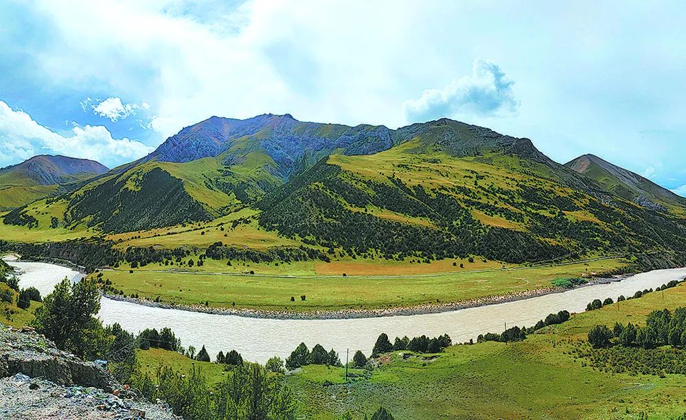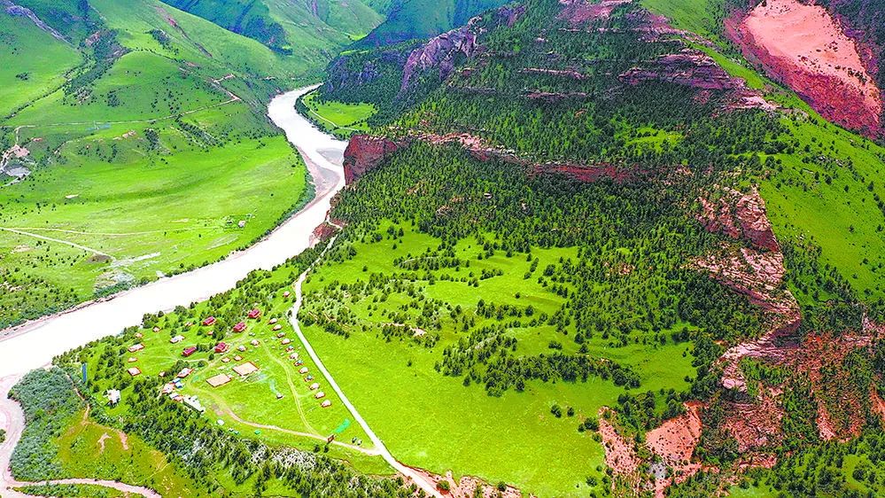 然察大峡谷距离囊谦县城约110千米,是通往达那寺的必经之路,峡谷景观独特,浑然天成,集“险、秀、雄、奇、幽”于一体,吉曲河穿峡谷奔流而出,峡谷内怪石嶙峋,松、柏及各种灌木在石缝中、悬崖峭壁间傲然而生,其间河水湍急,溪水潺潺,清澈见底,盛夏时节鸟语花香,晚秋之季树叶红似香小,令人流连忘返。这里远离城市的喧嚣,安宁静谧。田园与草原、村庄与牧场和谐而美丽,纯粹的人文景观与优美的自然风景交织,展现出了一幅令人神往的画面。