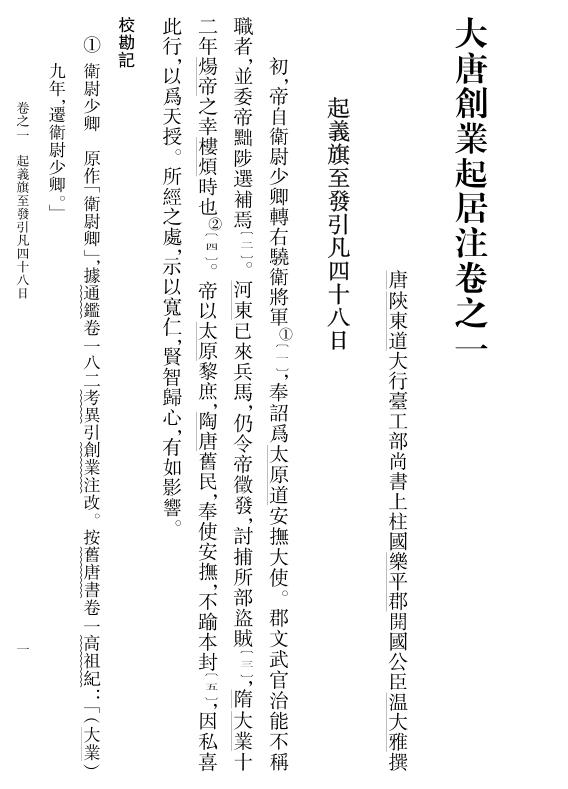 关于李唐开国的纪事,我们可以比对出三个不同层次的文献,即出于温大雅之手的《大唐创业起居注》(以下简称《创业注》)、《册府元龟》中节录的唐实录、因袭国史旧文而成的《旧唐书》。