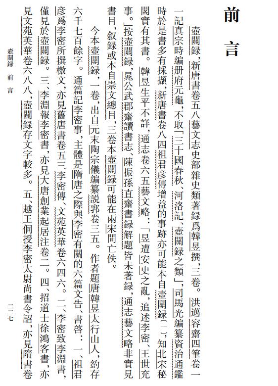 复旦大学历史系仇鹿鸣教授整理《大唐创业起居注》,以《秘册汇函》本为底本,通校《学津讨原》本、善耕顾氏文房抄本、黄丕烈校本、吴翌凤抄本、《藕香零拾》本,参校《通鉴考异》引《创业注》,并参考《隋书》、《旧唐书》、《册府元龟》等史籍,笺证中注释人物、地理、史事。点校《壶关录》以张宗祥校刻涵芬楼《说郛》一百卷本为底本,校以国图藏明弘治十三年抄本《说郛》,并利用多种文献作他校和辑佚。