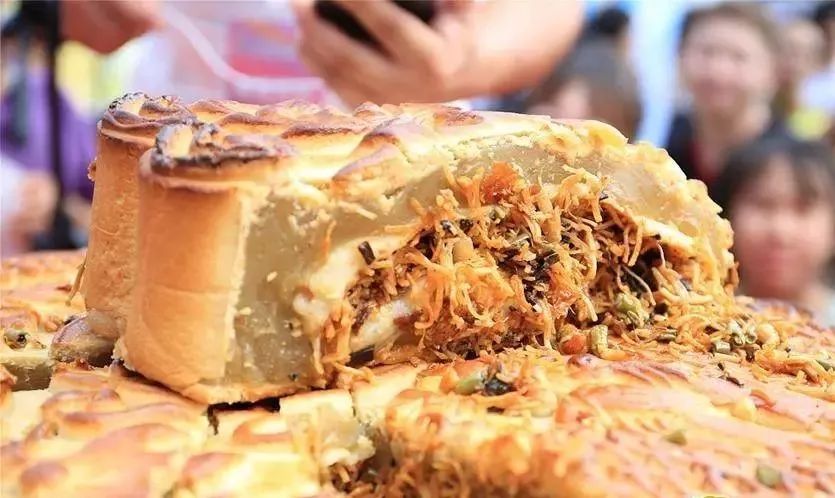 2017年中秋节,柳州一酒楼将“以臭闻名”的螺蛳粉与传统广式月饼相结合,把米粉、酸笋、木耳、螺蛳肉等材料组成的螺蛳粉馅料装进月饼“肚子”里,制成一个60斤重的螺蛳粉月饼。图/视觉中国