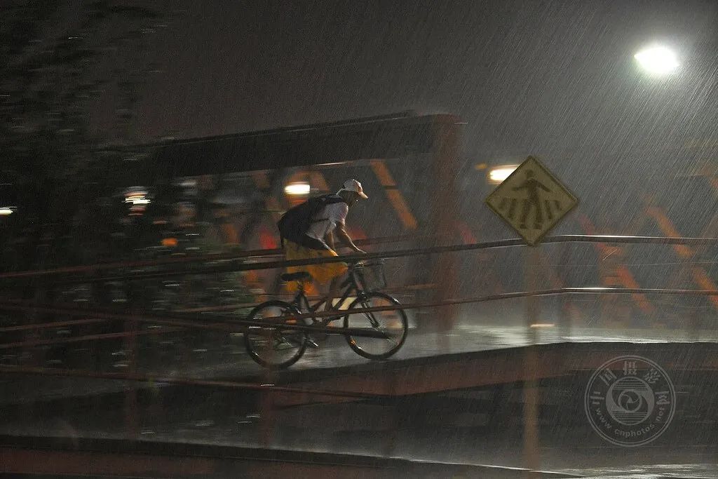 弹出式闪光灯通常是个坏主意,因为雨会将闪光灯反射回你身上。背光是更好的解决方案,它将创造一个漂亮的发光效果,照亮雨水并在水坑中反射。