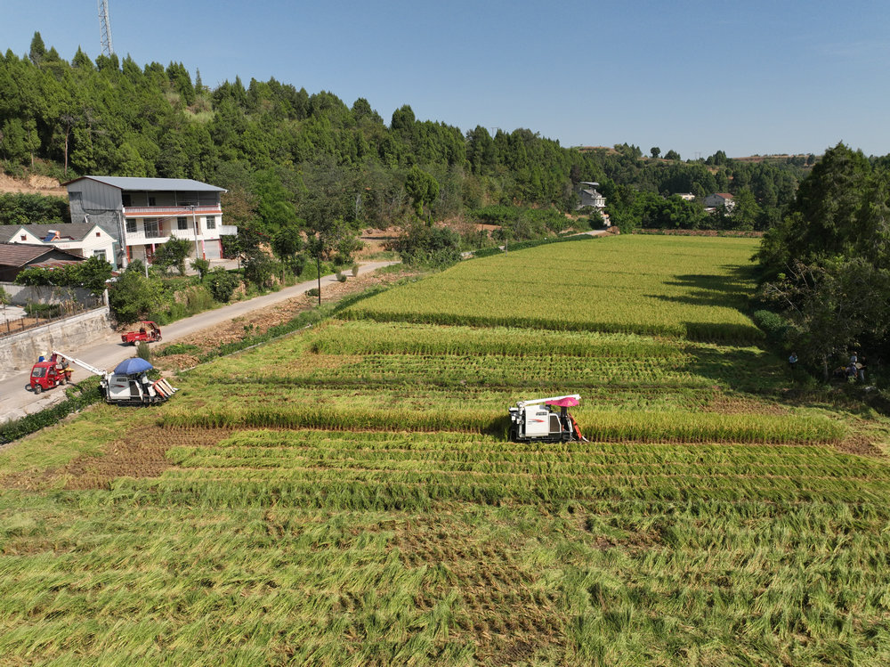 “前段时间持续高温干旱,巨型稻经受住了考验,高度长到1.9米左右,预计亩产量能达800公斤,比同期常规稻增产30%左右。”连日来,在绵阳市三台县中太镇猫儿沟村巨型稻试种基地,2台联合收割机忙着收割水稻,测产技术人员在田中同步开展测产工作。