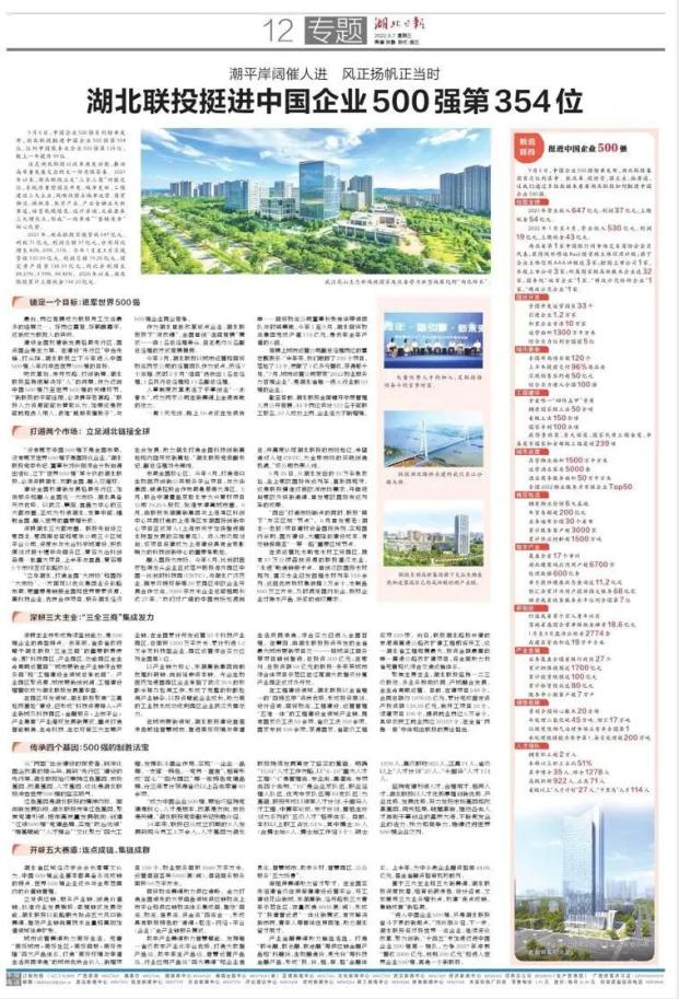 原标题:《湖北日报:潮平岸阔催人进 风正扬帆正当时 湖北联投挺进500强》