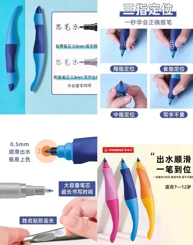 三指定位,顺滑出水,速干不洇纸,适合三年级以上的娃用。