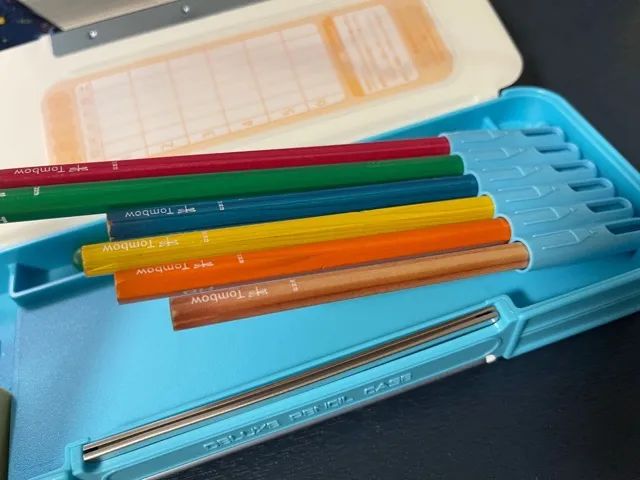 铅笔盒约重160g,可以放7+1 支笔(免笔帽),小低足够用了。