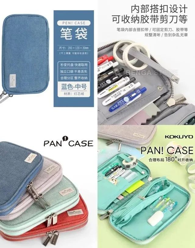 这款笔袋的好处是,可以放一些小卡片和小东西,既有分区,又有小口袋,不至于找不到或翻得很乱。而且灯芯绒材质很轻便,落地无声,老师应该会喜欢。