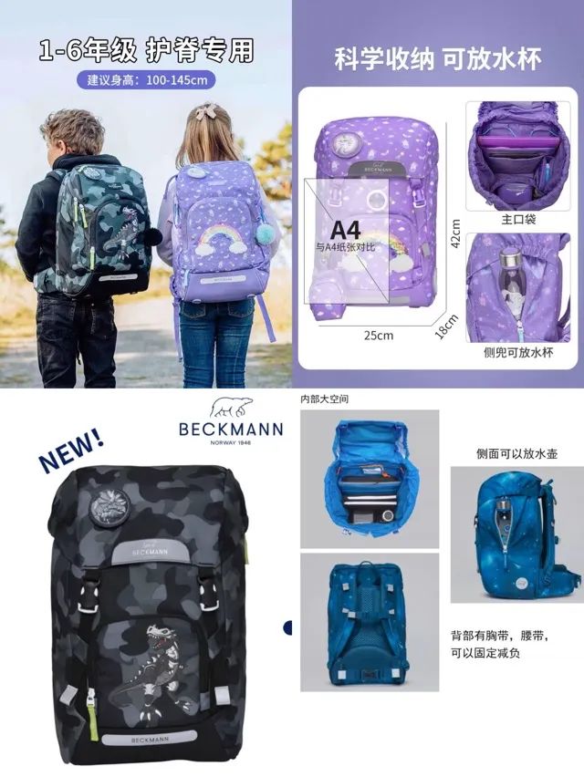 内部分隔层多,可以进行很好的收纳。他家的书包还有魔法变身款,可从20L变到25L,小学阶段全覆盖的感觉,初高中还有30L以上的大容量款!