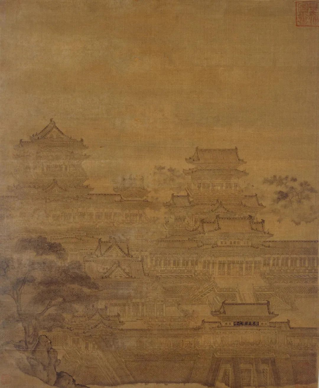 这幅《广寒宫图轴》画风近于元代王振鹏,建筑结构严整,尺寸层叠合乎法度,为元代界画中的佳构。
