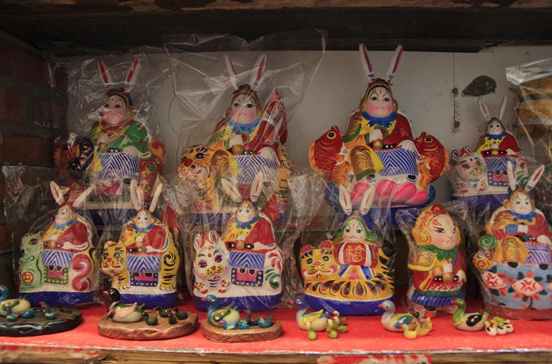 我曾经带着兔儿爷,参加台北市的一个民俗展览,几位八十多岁的老者看到满桌的兔儿爷,顿时老泪纵横。我一问,才知道是“老北京”了。我想,对老者来说,兔儿爷不仅是儿时的回忆,更是连着故乡与他们之间的那根“线”。