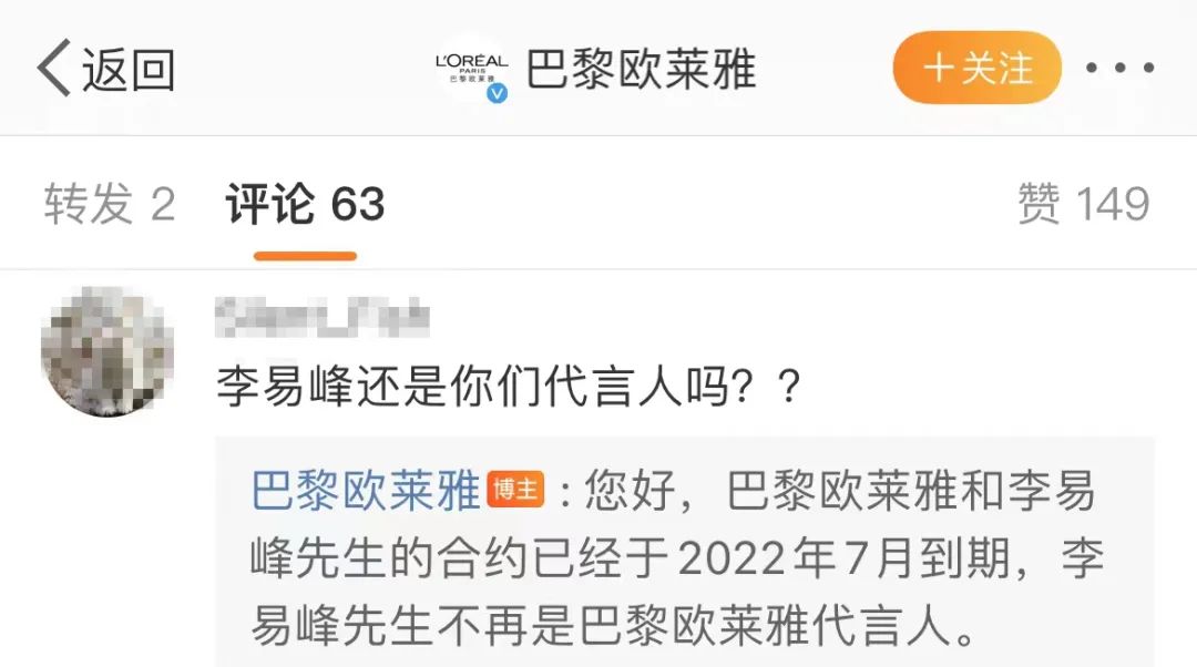 猎聘APP通过官博表示,其与李易峰的代言合作已于2022年7月3日到期,相关宣传已随合同到期终止。