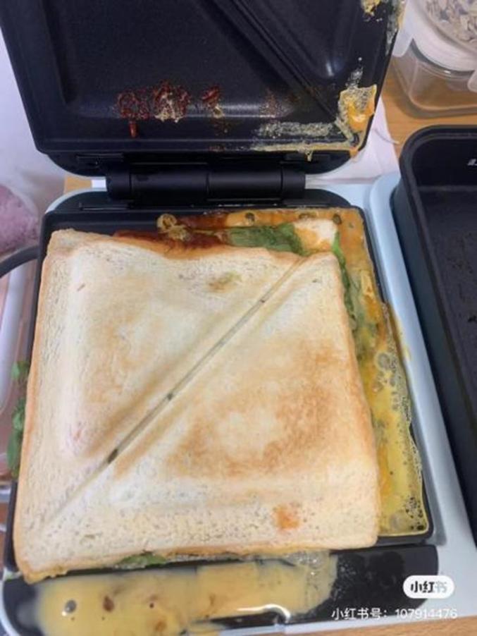 “把三明治压下去的那一刻很解压,打开以后又会变得比较薄,看起来酥酥脆脆,很好吃。”在短视频上看到有人用三明治机做早餐,家居博主顾顾(小红书ID@顾大爷)心动了。她立马到淘宝上下了单。
