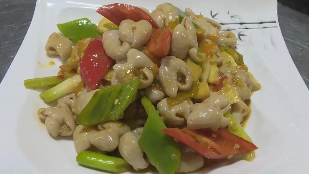 每年子姜上市时,乐昌人会把它与红辣椒一起加盐入缸,腌制约两个月,腌好后的子姜辣椒咸酸适口,风味独特,是当地厨师常用的辅料,酸姜炒大肠就是一道经典美食。黄的酸,红的辣,在高温爆炒之下,被韧性十足的猪大肠完美地吸收,出锅后的大肠入口爽脆,那独特的酸辣滋味也让食客胃口大开。