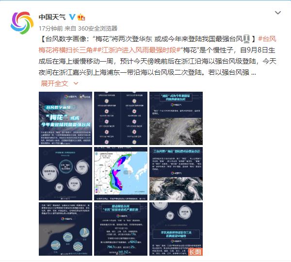 “梅花”将两次登华东 或成今年来登陆我国最强台风