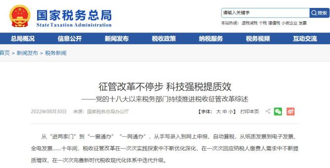 原文内容:以金税四期建设为主要内容的智慧税务建设正式启航,推动税收征管方式从“收税”到“报税”再到“算税”,税收征管流程从“上机”到“上网”再到“上云”,税收征管效能从“经验管税”到“以票控税”再到“以数治税”。