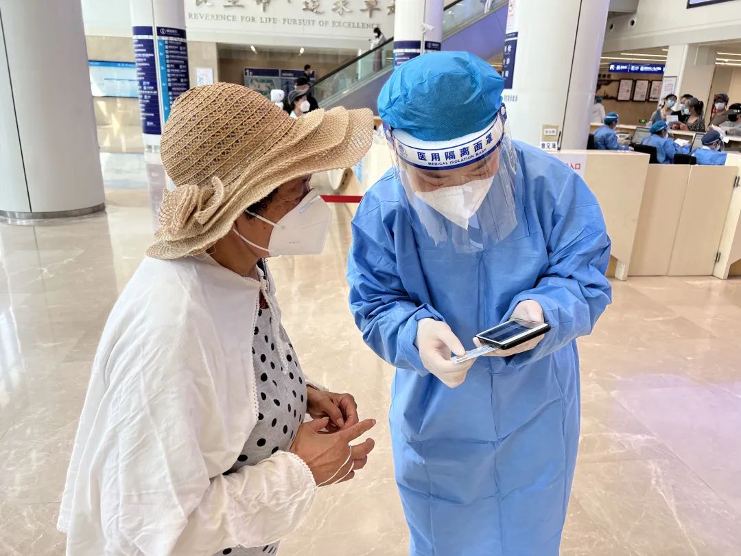市民叶阿姨上午来上海四院复诊、配药,听说医院的“线上服务”功能升级,可以直接用手机挂号、付费和查看报告,便在门诊工作人员的指导下进行了设置。