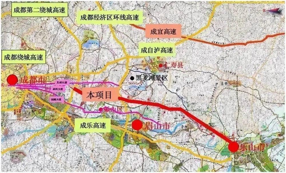 建成后,将串联成都第二绕城高速、成都经济区环线高速、遂资眉高速、乐山绕城高速、乐资高速,进而连接乐西高速,形成连通成都平原经济区、攀西经济区的南北向大通道。