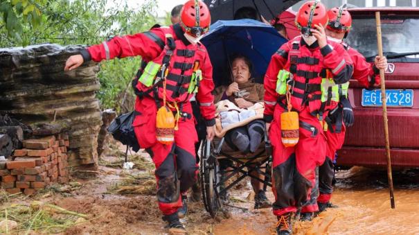 紧急转移被困老人、小孩