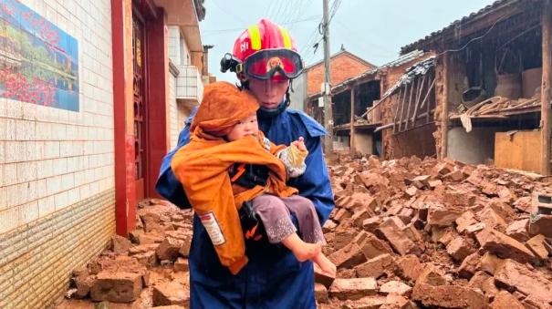 参战指战员们毫不畏惧挨家挨户搜救,抱出孩子,背起老人,抬送行动不便者……