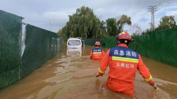 红河州消防救援支队全体参战指战员坚决服从命令、听从指挥,全力以赴完成抗洪抢险救灾任务,不负党和人民的重托!