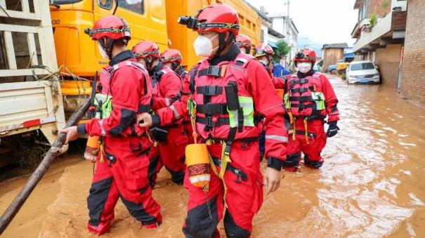 中午12时50分许,消防指战员到达中枢镇大雨龙村后,发现村内到处是被洪水冲毁的房屋、车辆,道路被水淹没,地形复杂,分不清哪里是路,哪里是沟。前方指挥部指挥员随即要求增援队伍和当地救灾人员分成四组,对村内进行全方位排查。