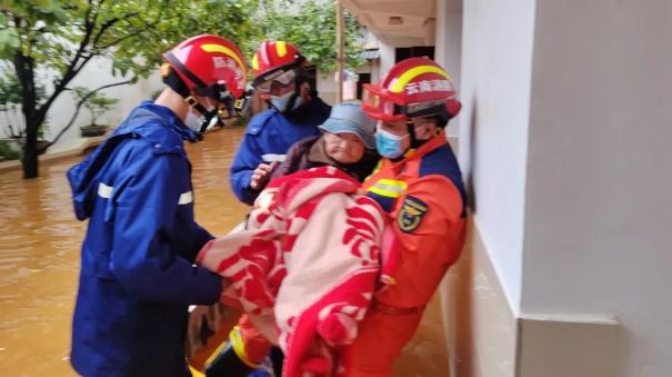 调集周边地区蒙自、开远、弥勒3个大队组成抗洪抢险突击队和攻坚组共58名消防指战员(弥勒10人、开远10人、蒙自10人),抢险救援、装备运输、通信保障等各类车辆11辆,舟艇4艘紧急投入救援行动,救援力量重点部署在城区、中枢镇各村庄。