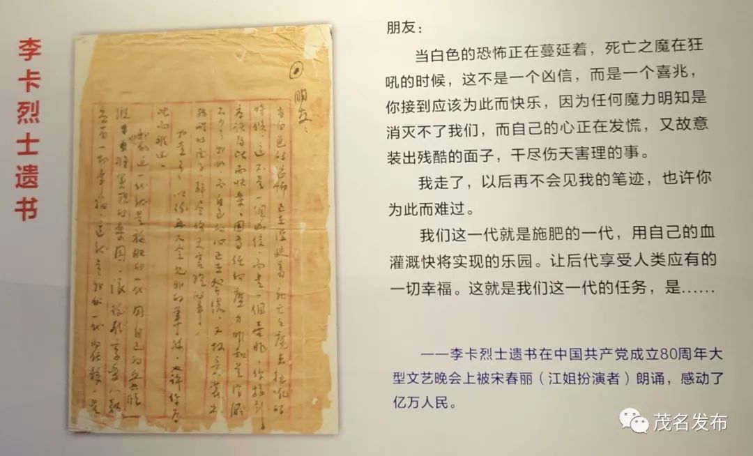 李卡烈士的遗书。茂名日报社全媒体记者 甘杨松 摄