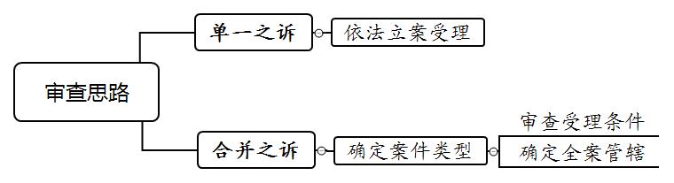 法院审查该类案件时,首先,应对起诉的诉讼标的进行审查,确认属于单一之诉或合并之诉。其次,在确认为合并之诉后,根据相关法律规定及各诉之间的牵连性确定案件合并之诉的类型。最后,在此基础上审查受理的条件及确定管辖的法院。
