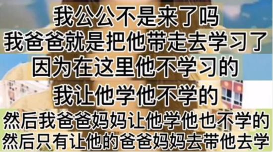 朱小伟14岁时,觉得学习太苦,一开始大衣哥还愿意拿钱哄他好好读书,可朱小伟把钱拿去打游戏;请过几位家庭教师,都被朱小伟气跑了……朱小伟想着反正家里这么有钱,初中没念完就辍学了,整日沉浸在游戏、动画和零食里,大衣哥对此的态度是——不想念那就算了吧,在家种地也可以: