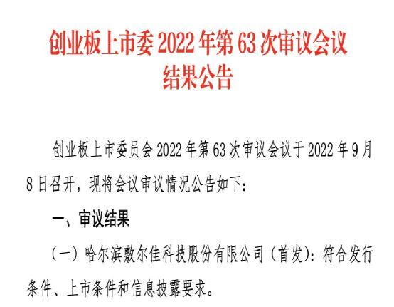 值得注意的是,9月8日,深交所创业板发行上市审核信息公开网显示,哈尔滨敷尔佳科技股份有限公司成功通过上市委会议。