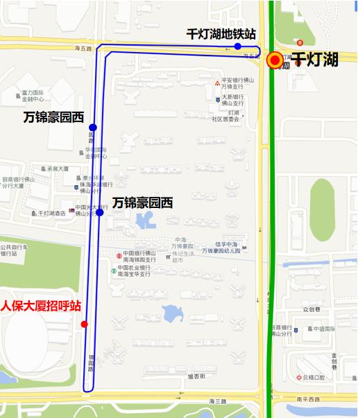 途经站点:千灯湖地铁站-万锦豪园西-人保大厦招呼站-万锦豪园西-千灯湖地铁站