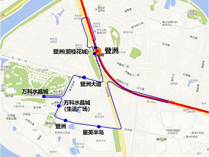 途经站点:万科水晶城-万科水晶城生活广场-登洲-星英半岛-登洲(碧桂花城)-登洲(碧桂花城)-登洲大道-万科水晶城