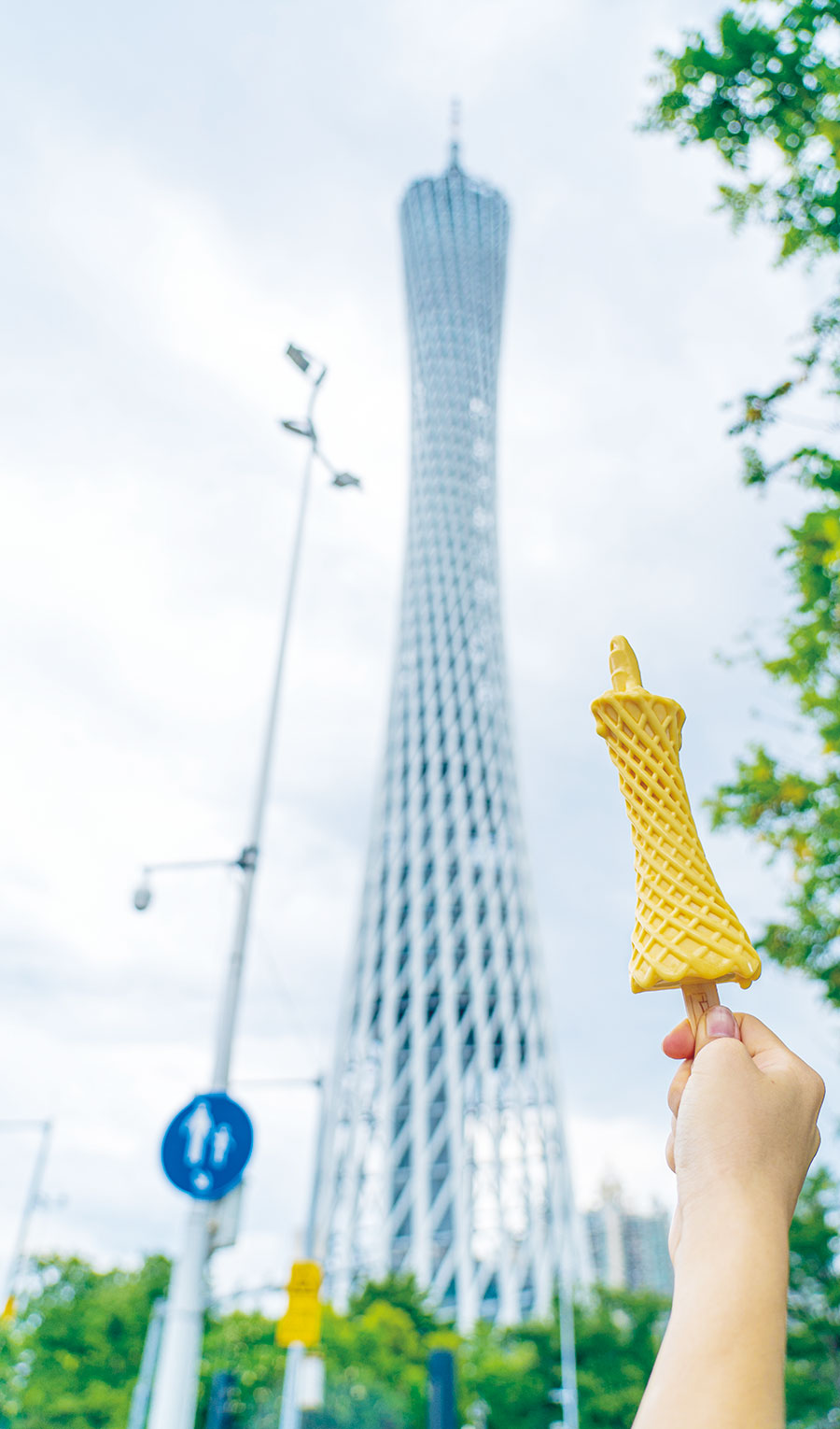 蛮腰绰约,立城郭之高标。2010年9月29日起,广州塔正式对外开放。它的建筑总高度为600米,其中主塔体高450米,天线桅杆高150米,是中国第一、世界第三的旅游观光塔。“超高、扭转、偏心、透空、收腰”这些复杂结构特征都是前所未有的设计和建造难题,广州塔的成功建设使得这些难题实现了从无到有的突破。作为广州最瞩目的地标之一,广州塔凭借它宛如少女纤纤细腰般的迷人身姿,向世界展示着广州这座城市的无限魅力!这款文创雪糕的造型,就是广州塔的缩小版。拿着广州塔(芒果味雪糕)与广州塔拍一张合照,这张“出圈照”,使得整个夏天都被美美治愈了。