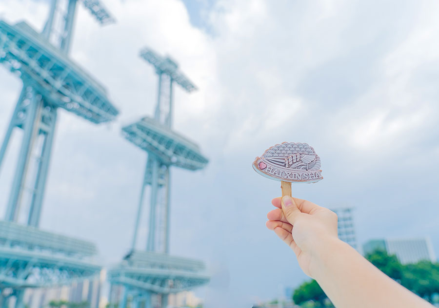 海心沙是珠江上的一座小岛。作为广州新城区的一个交汇点,海心沙的东西向是见证了广州两千多年古城风雨的历史轴线珠江,南北向是广州面向未来发展的城市新中轴线。2010年第16届广州亚运会的成功举办,让举办开幕式和闭幕式的演出场所——海心沙一举成名,从默默无闻的小岛摇身转变为广州新地标。这款文创雪糕,就以海心沙的造型为基础打造而成。举起雪糕,合影留念,恍惚间,那年广州亚运会海心沙舞台上的精彩演出,映入眼帘。现在的海心沙,继续宣扬着亚运文化及亚运精神,整合起优秀资源,常打造出不同主题的海心沙亚运公园常态主题观光游,发展成为集文化、旅游、休闲、娱乐等功能于一体的综合性五星级景区和文化旅游名片。