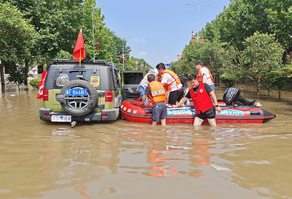 △郑州“7·20”特大暴雨期间,中建七局扛牢属地央企责任,全力助力当地防汛抢险、排涝清淤、灾后重建