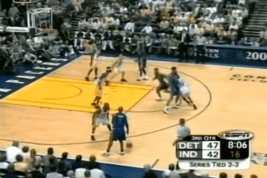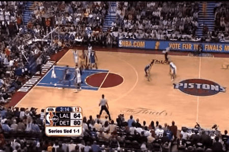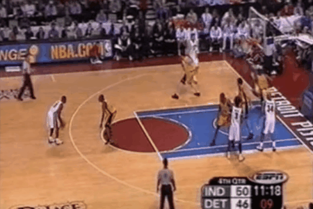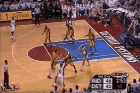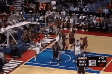这个恶意犯规成为了比赛的转折点,汉密尔顿两罚皆中,拉希德.华莱士补扣得手,活塞取得全场第一次领先的同时,瞬间把拉开到了4分。