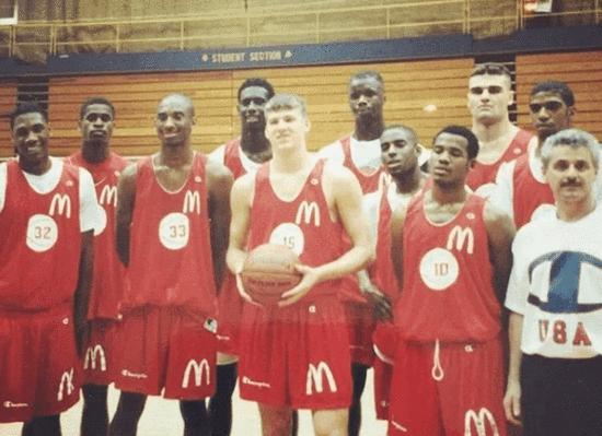 1996麦当劳全明星,和科比(以及斯蒂芬-杰克逊、小奥尼尔、蒂姆-托马斯等人)的合影