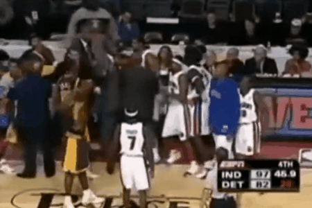 你可知奥本山宫殿事件,是从什么时候开始变味儿的吗?正是从他肘击廷斯利,裁判不作为开始(然后大本干翻了空切的对手)。