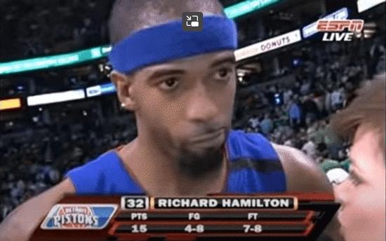 在这种犬牙交错的比赛中,理查德.汉密尔顿4分2助攻,策出一波8-1将比分追到了只差1分。