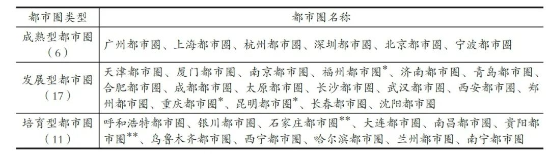 根据清华大学中国新型城镇化研究院组编的《中国都市圈发展报告2021》,我国共有6个成熟型都市圈,17个发展型都市圈,11个发展型都市圈。