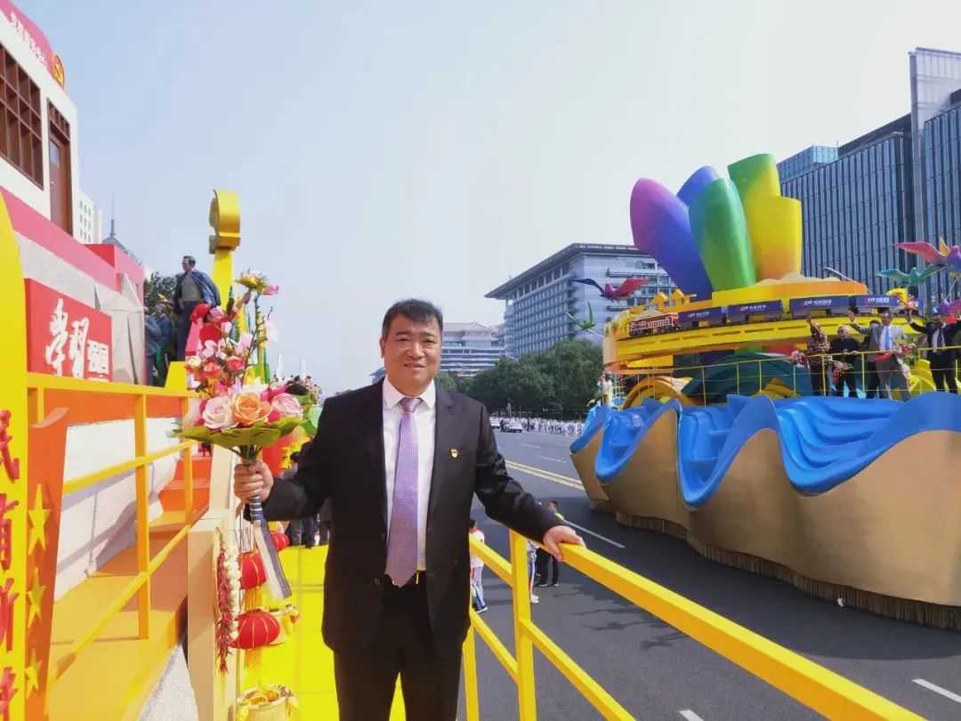 2019年10月1日,在庆祝中华人民共和国成立70周年大会的群众游行队伍中,贾家庄村党委书记邢万里作为基层代表,光荣地登上了“从严治党”的彩车,通过天安门,接受检阅。