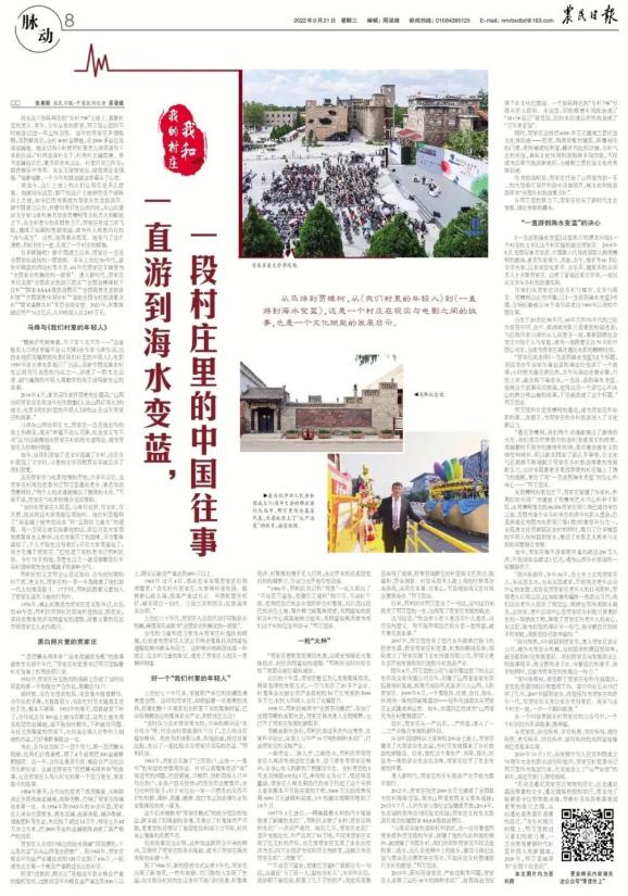 “遇见贾樟柯,我们两个灵魂碰撞出了激情的火花,我们都有把梦想中的农村变成现实的理想,都揣着时不我待的激情和热情,都有着浪漫主义的情结和情怀,所以就共同做了那么多事情,让文化气息源源不断地赋予贾家庄乡村旅游厚重的发展软实力,也给承载着更多更远梦想的村庄插上了腾飞的翅膀,更给了我‘一直游到海水变蓝’的信心和决心……”邢万里说。