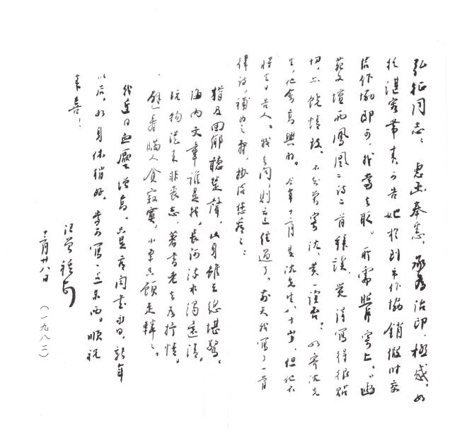 1984年正月初五,汪曾祺在蒲黄榆新居致信弘征,告知新居地址,并将一首《一九八三年除夕子时戏作》录奉,自言虽至老境,却并不颓唐。