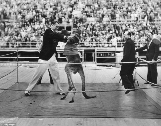 历史上,还真有人给袋鼠戴上拳击手套,跟它们来一场拳击赛。